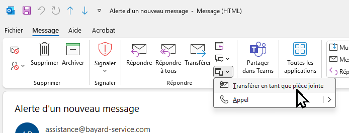 Transférer un ou plusieurs courriels en tant que pièce(s) jointe(s)
